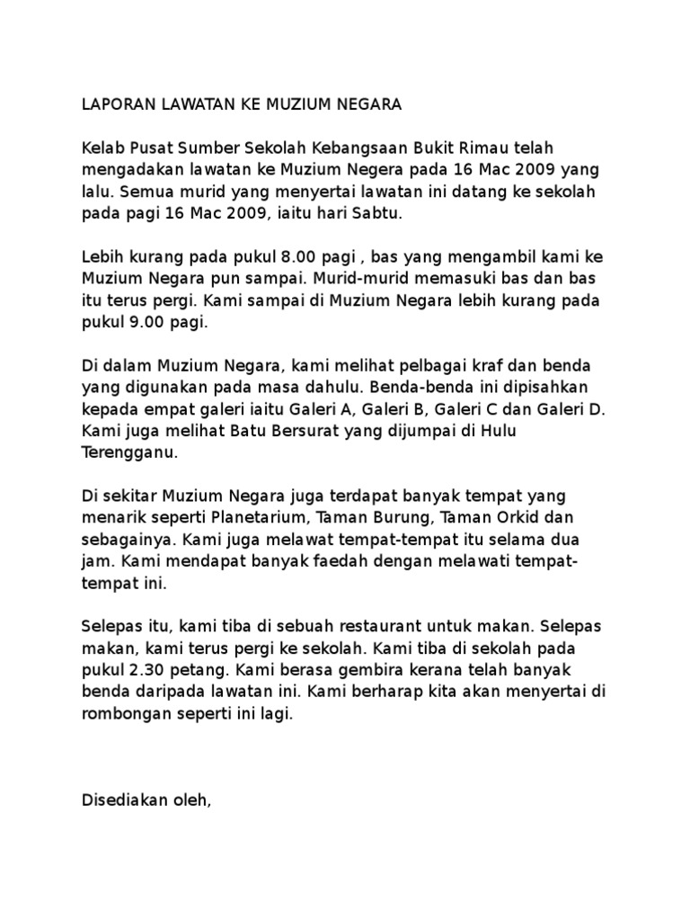 Laporan Lawatan Sambil Belajar Ke Muzium Negara - Majdi aka hero mas 3.. Lebih kurang sama konsepnya dengan lawatan ke kg. Thomas albechien subjek : Satu lawatan sambil belajar akan diadakan pada bulan april depan ke pusat perkembangan bahasa, universiti islam antarabangsa. Lawatan sambil belajar pengajaran&kesimpulan kali pertama mengunjungi negara china mengenali banyak kawan baru guang zhou, china terima kasih! Lawatan ini diadakan pada hari sabtu, 26 mac 2016 pada jam 6.
