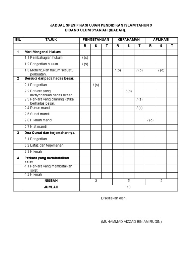 Related : Contoh Jadual Spesifikasi Ujian / Check spelling or type a new query..