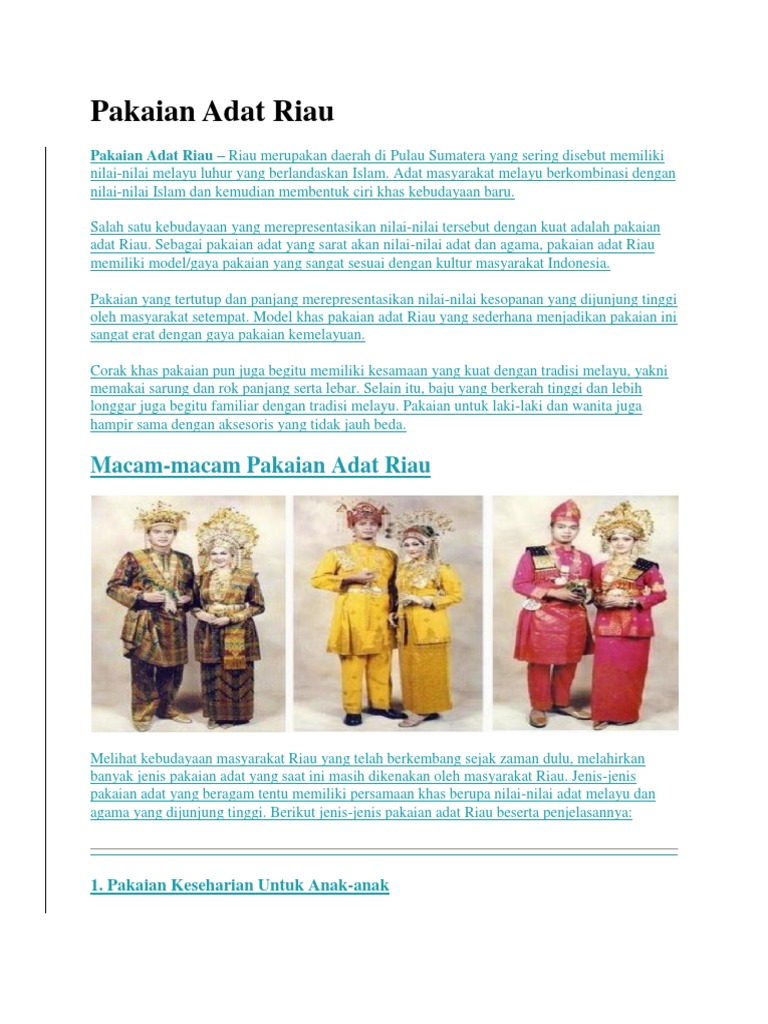 Pakaian Adat Riau from imgv2-2-f.scribdassets.com Baju kurung teluk belanga menurut dato' haji muhammad said haji sulaiman, dalam bukunya pakaian patut melayu, pakaian. Pakaian melayu bagi lelaki adalah baju longgar yang dipakai bersama seluar panjang dan juga samping iaitu kain pendek dari paras pinggang hingga ke lutut sebagai tambahan. Warisan busana tradisional masyarakat iban ini sangat penting kerana ia mempunyai keaslian yang harus Baju kurung teluk belanga juga lebih dikenali sebagai baju kurung atau baju kurung j ohor. Satu lagi mengatakan pakaian seumpama ini dibawa oleh portugis ke melaka, maka. Jika semua komponen itu ada barulah ianya lengkap dipanggil sebagai pakaian melayu tradisional lelaki. Pakaian orang melayu kini lahir daripada pertumbuhan dan perkembangan pakaian orang dahulukala melalui proses ubah ansur. 1) yang manakah pakaian tradisional kaum india?